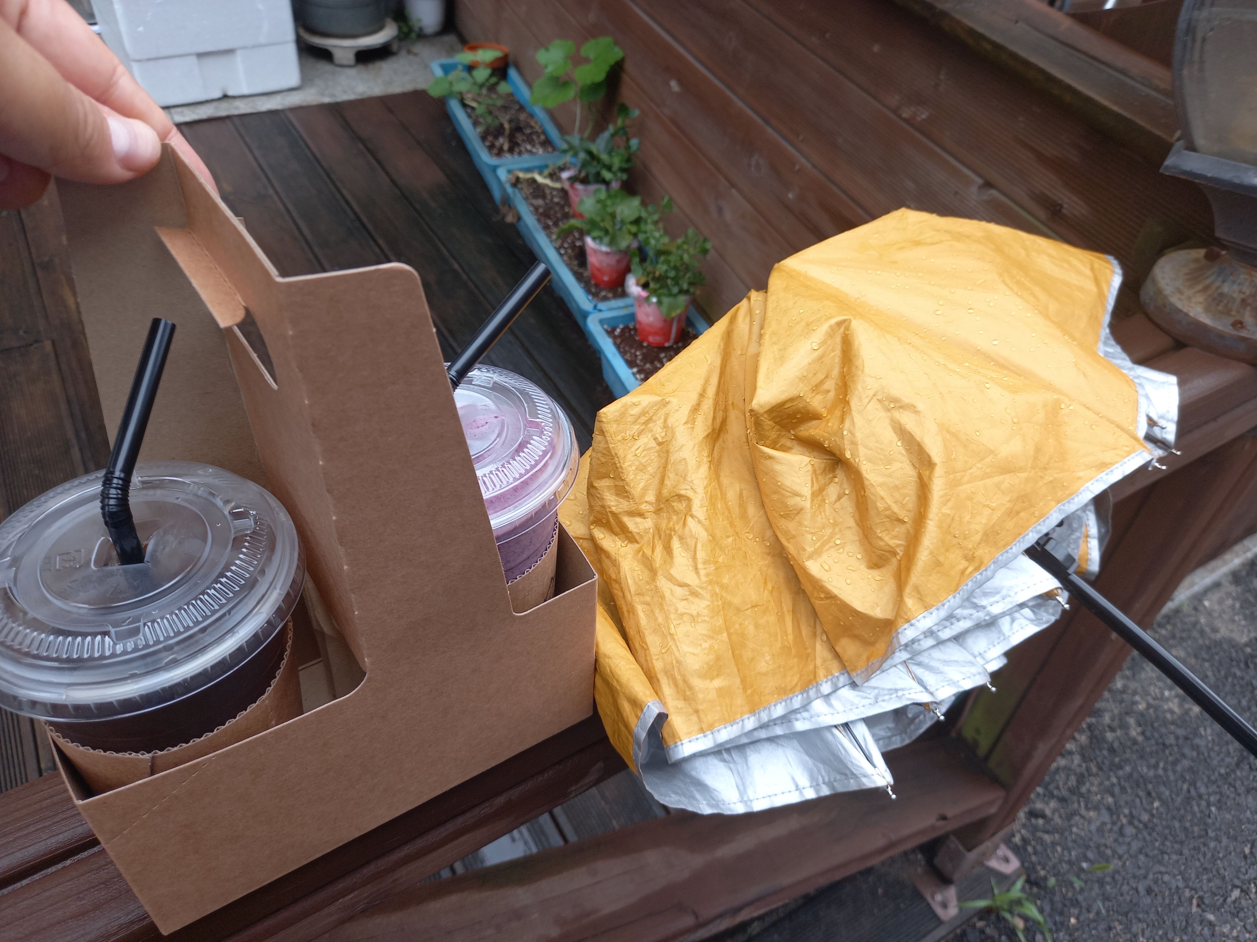 스무디와 아이스티가 나오고 밖으로 나왔습니다. 걸어다니면서 계속 마셨는데, 잠깐 비가 그쳐서 돌아다니기 편해졌습니다.