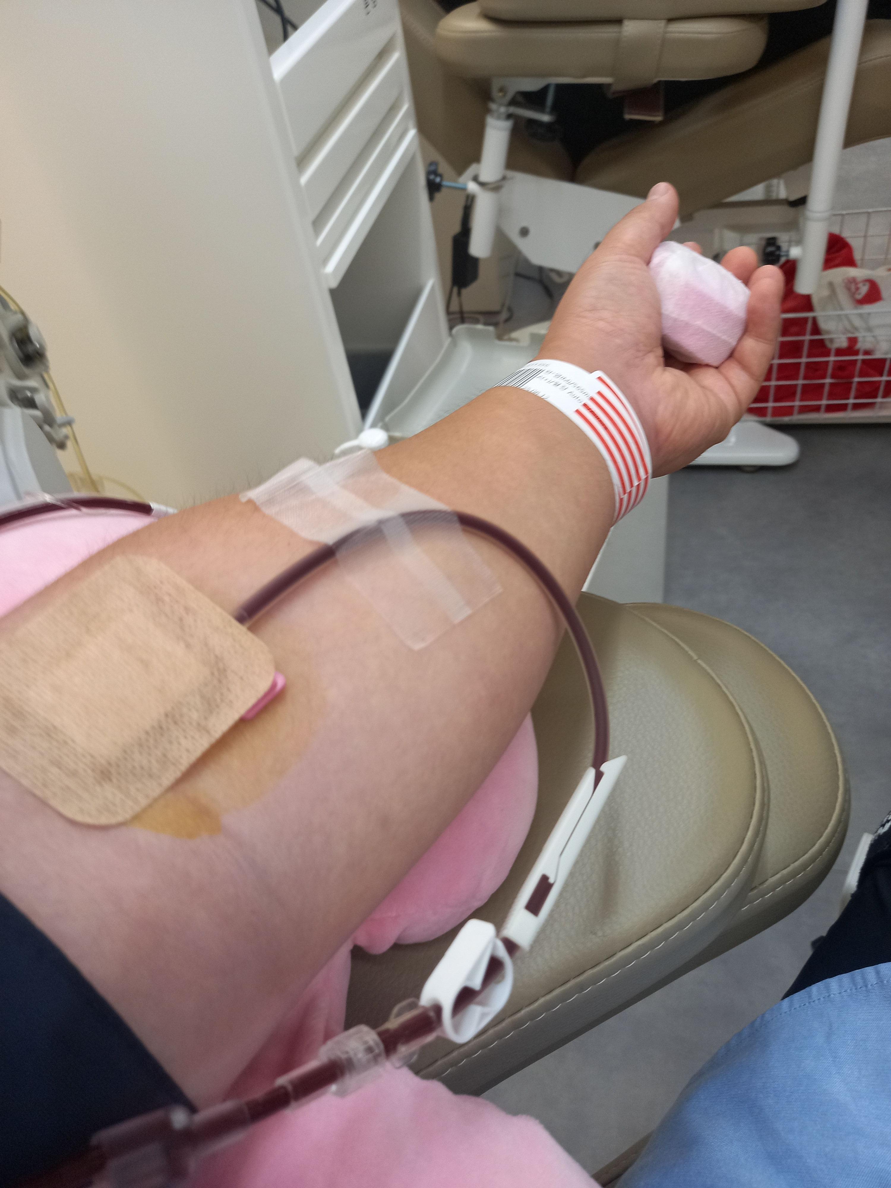 평소에는 오른팔로 헌혈했는데 이번에는 왼팔로 헌혈했습니다. 간호사 선생님이 오른팔보다 왼팔의 혈관이 더 좋다고 권유했고 저는 귀담아 들었습니다.