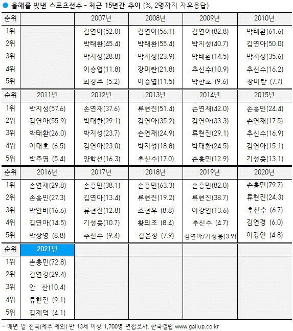 스포츠한국 쪽 조사는 매년 11월에 최신으로 나와서 비교하기 좋을 것 같습니다.