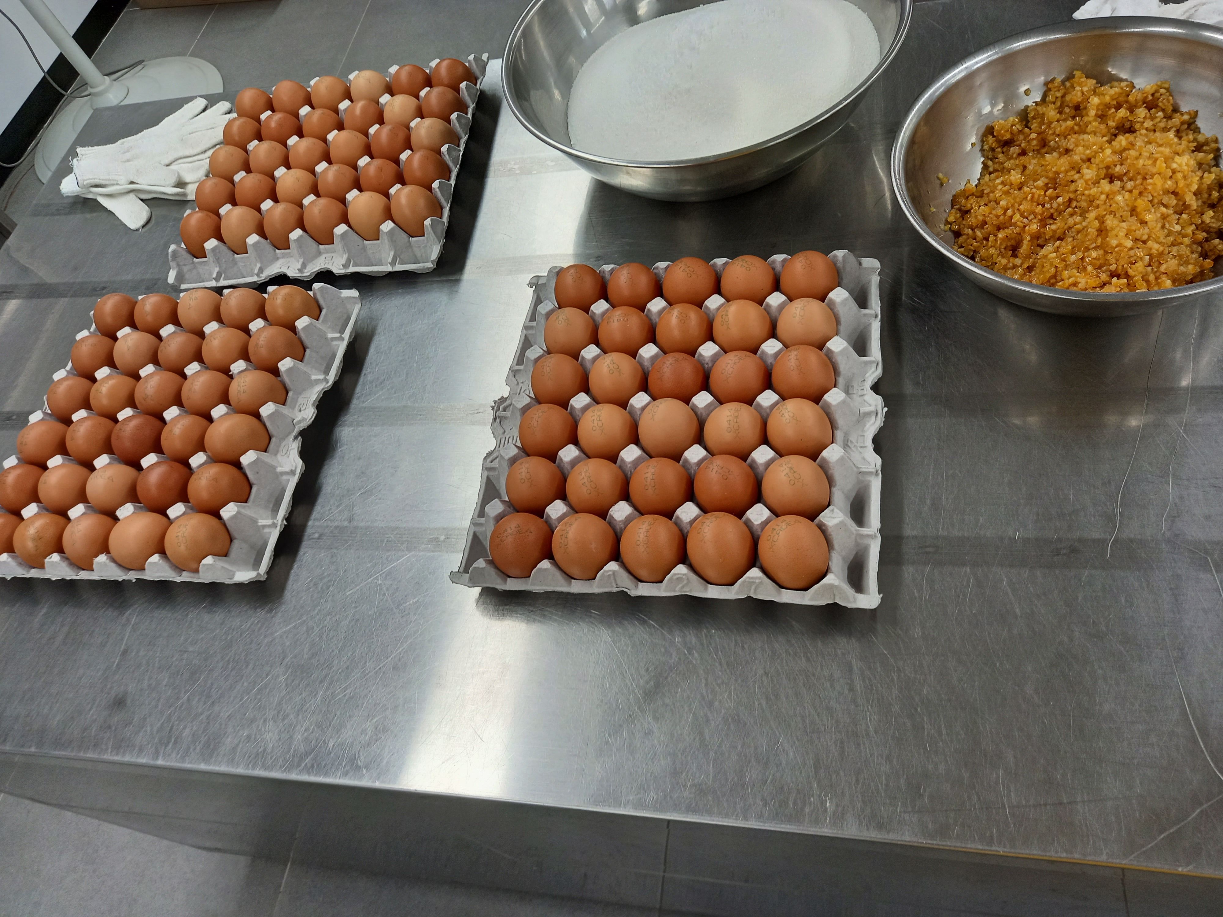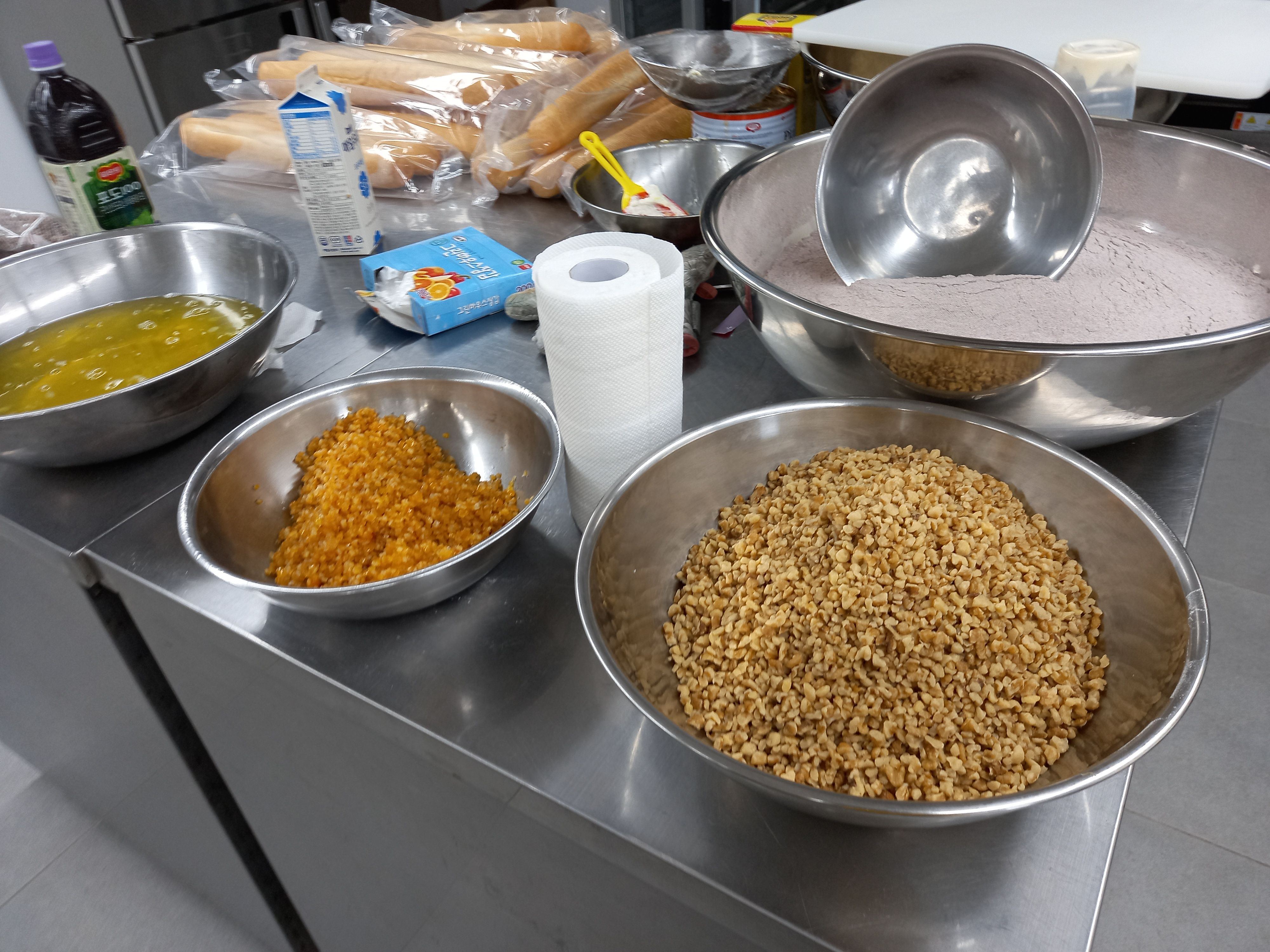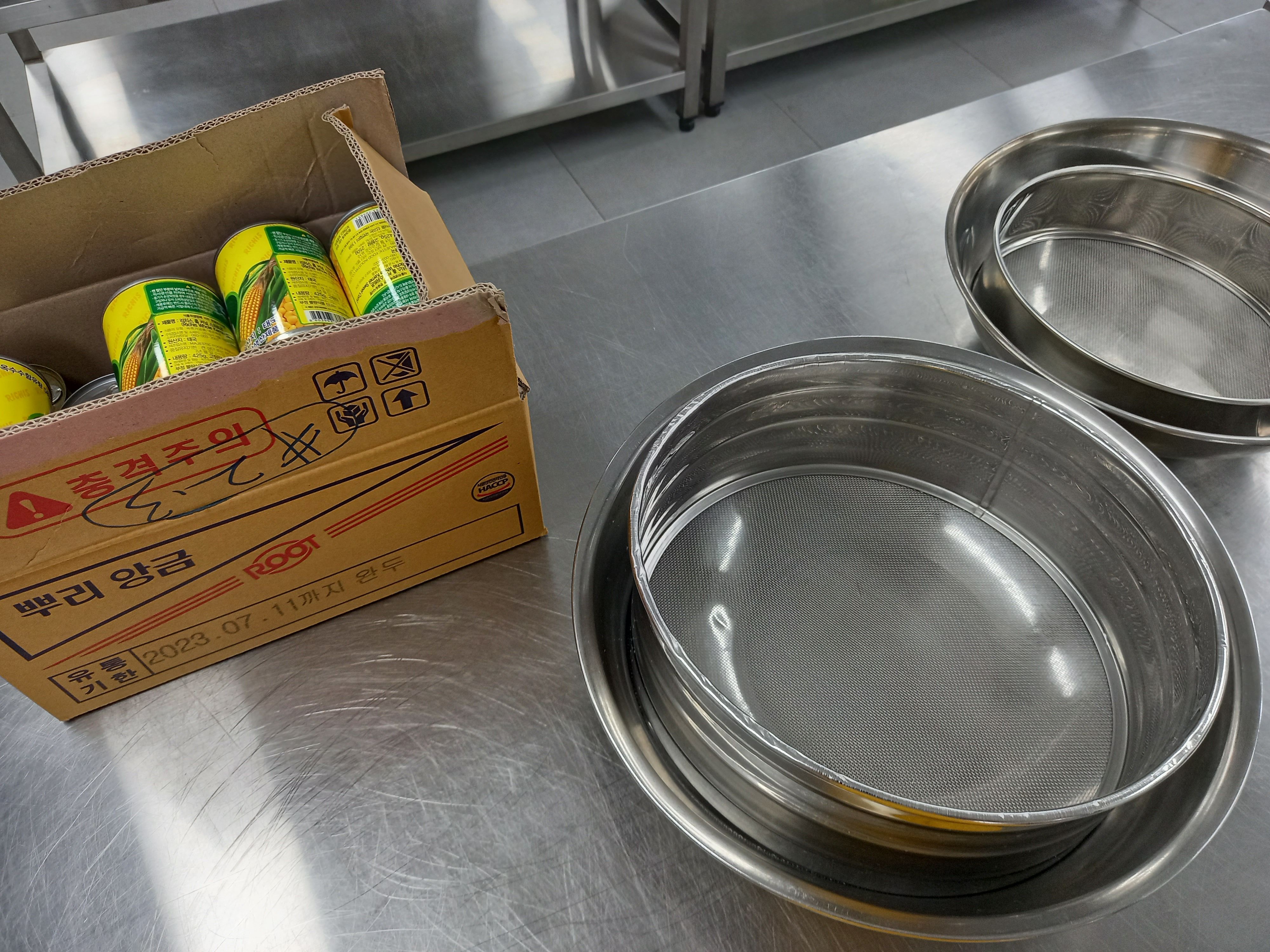 제빵 봉사활동을 시작하자마자 피망과 양파 같은 채소를 썰어야 하고, 체로 밀가루를 곱게 쳐야 하고, 계란을 까서 스텐볼에 넣어야 하고, 옥수수나 올리브 통조림을 까서 물기를 빼야 하는 작업 등으로 인원이 배분되었습니다.
